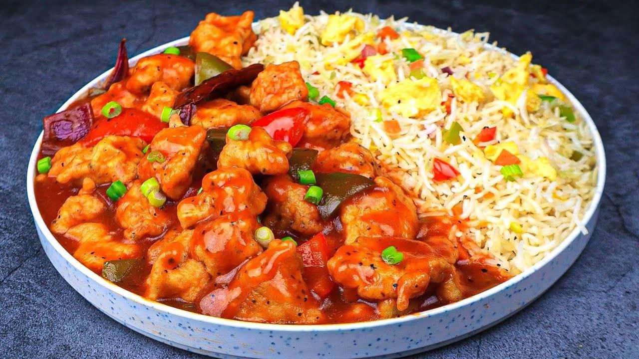tangy sauce and served with flavorful fried rice. This Indo-Chinese classic offers a perfect